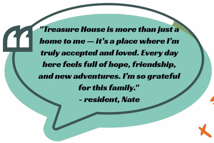 Treasure House opens up a whole new horizon to its residents. It is not only a place to live – it is a place of belonging that shares an outpouring of love and care. All the efforts extended have come to fruition. May God bless you all and help you along difficult but rewarding paths.” – Bobbie Martin, Justin’s grandmother